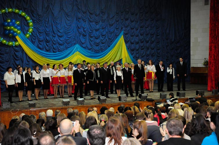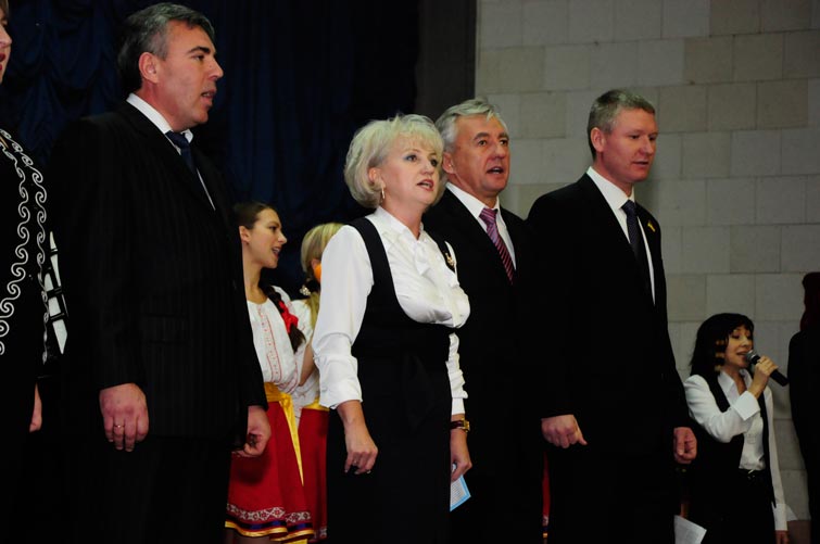 Ректор ДГПУ Светлана Омельченко предложила всем присутствующим посмотреть концерт – визитку вуза. И, надо сказать, что эти выступления постоянно прерывались аплодисментами и восторженными возгласами. А когда на финальную песню вышли представители ректората и артисты, участвовавшие в концерте, зал встал.