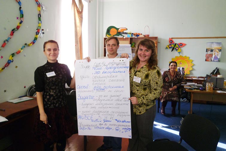 Участники тренинга разрабатывали модели программ обучения, получили знания по активизации творческого потенциала и научились использовать его при составлении тренинговых программ. В работе второго тренингового дня принял участие Сергей Решетов, представитель Фонда содействия демократии Посольства США, при поддержке которого реализуется данный проект.