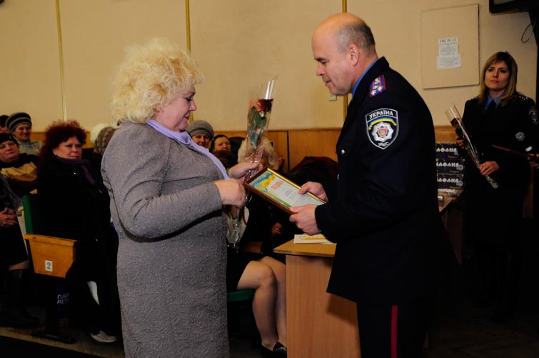 Работники милиции пришли на праздник поздравить активистов вместе с начальником городского отдела внутренних дел Александром Мельковским. Грамоты и цветы вручали галантно, целуя руку представительницам прекрасного пола.