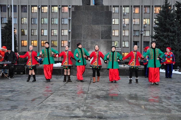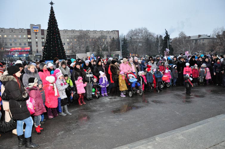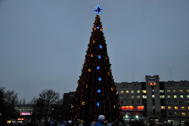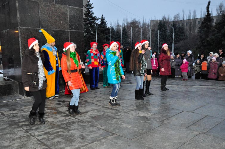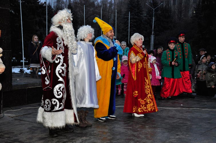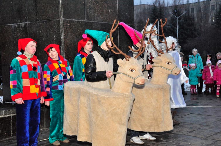 В День Св.Николая в Славянске торжественно открыли городскую новогоднюю елку. Неля Штепа поздравила детвору с праздником. В сопровождении оленей появился Св.Николай.