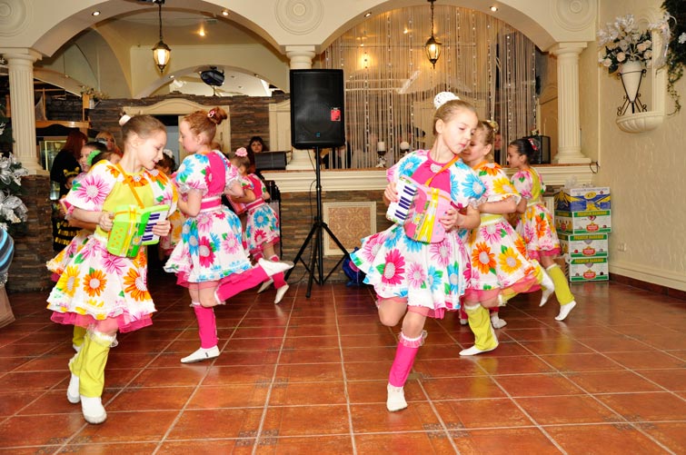 Для 70 детей были накрыты праздничные столы, а детские творческие коллективы города дарили ребятам песни и танцы.