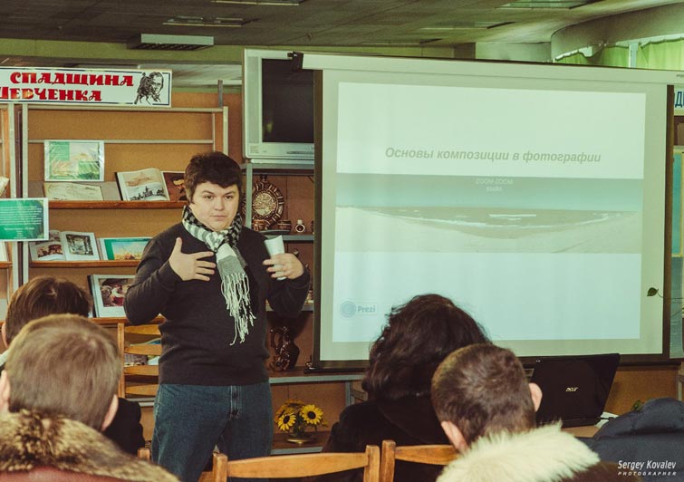 По окончании церемонии открытия Даниил Евтухов пригласил всех желающих принять участие в увлекательном мастер – классе, на котором поделился своими знаниями и тонкостями в области пейзажной съемки. Все присутствующие с удовольствием откликнулись на это приглашение.