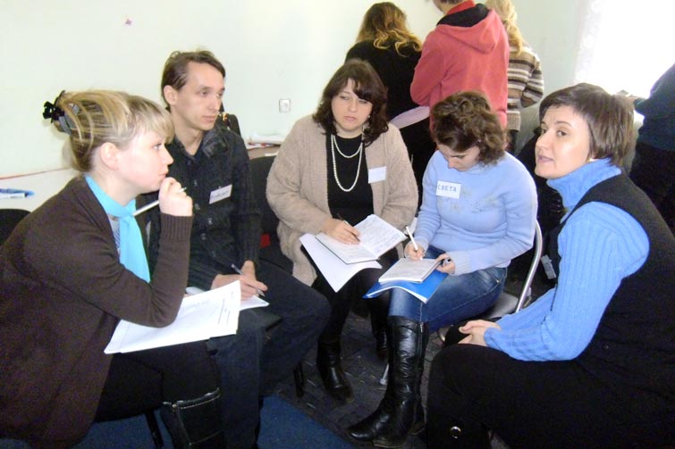 Тренер Светлана Закревская (председатель общественной организации «Альянс», г.Донецк) рассказала о собственном опыте по разработке проектов. Подготовленные раздаточные материалы пригодятся участникам тренинга при подготовке собственных заявок.