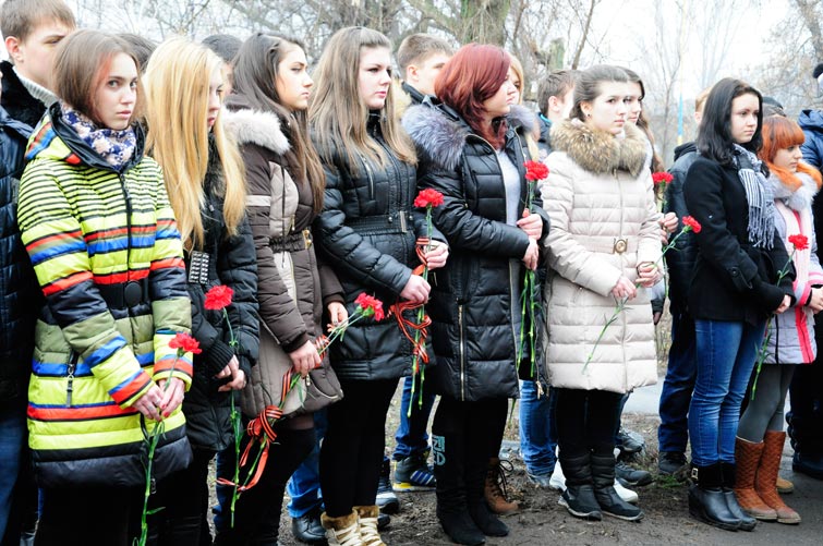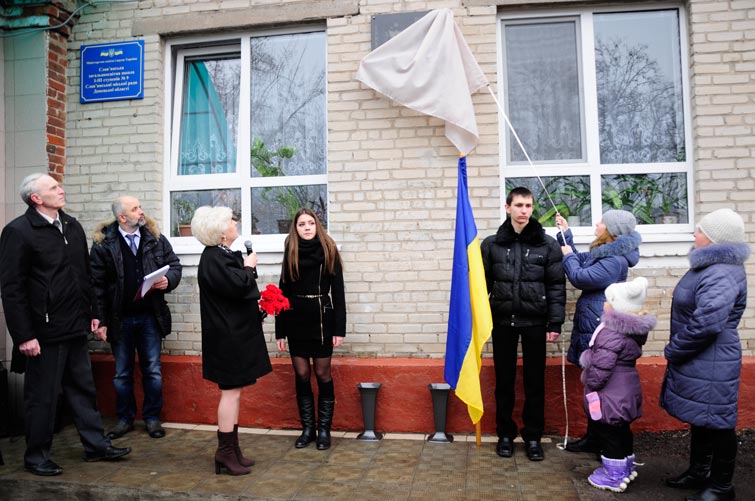 13 февраля на церемонию торжественного открытия мемориальной доски воину-интернационалисту Олегу Пивню у школы №9 собрались ученики и учителя, приехали также родственники Олега Пивня, Славянский городской голова Неля Штепа, представители городского совета.