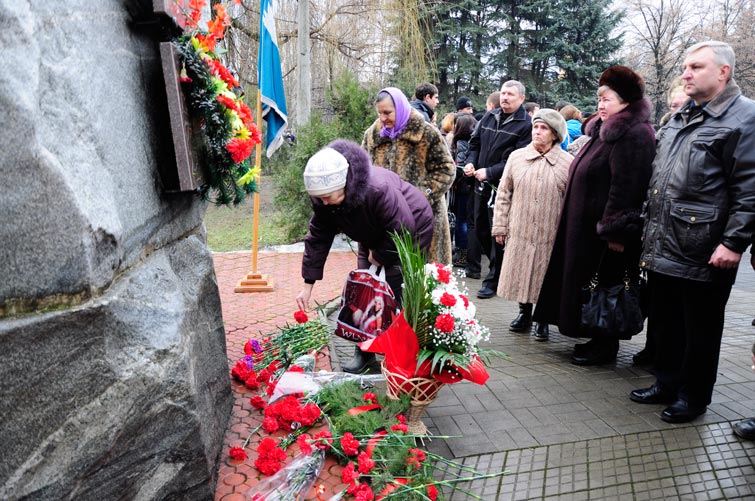 Присутствующие зажгли свечи, почтили светлую память погибших минутой молчания и возложили к памятнику цветы.