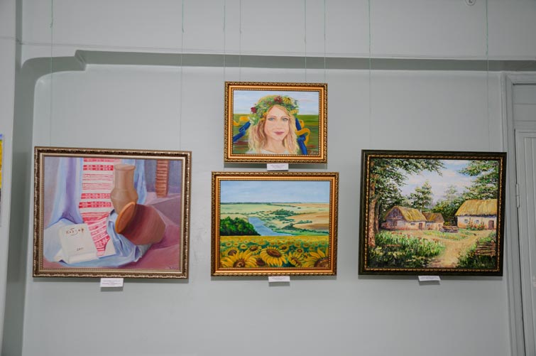 В одной экспозиции в нескольких музейных залах представлено более 70 картин, написанных в разных техниках как маститыми, так и юными художниками из Краматорска, Славянска, Дружковки, Макеевки, Святогорска, Горловки и Северодонецка.
