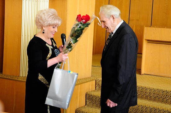 От имени всех присутствующих и всей громады Славянский городской голова Неля Штепа поблагодарила активного общественника за многолетнюю плодотворную работу на благо города, пожелал ему здоровья и новых успехов, вручила подарок и цветы.