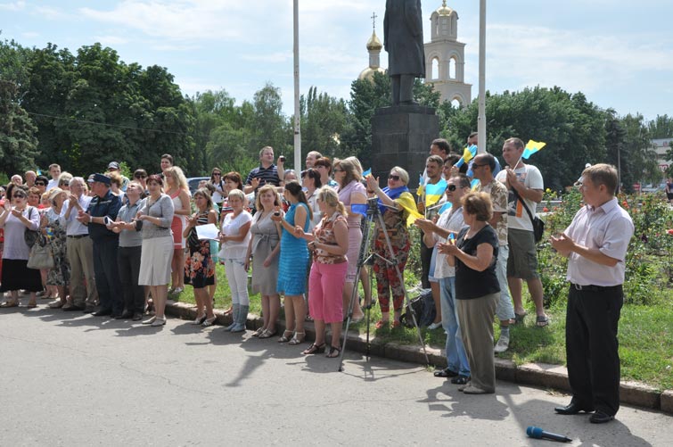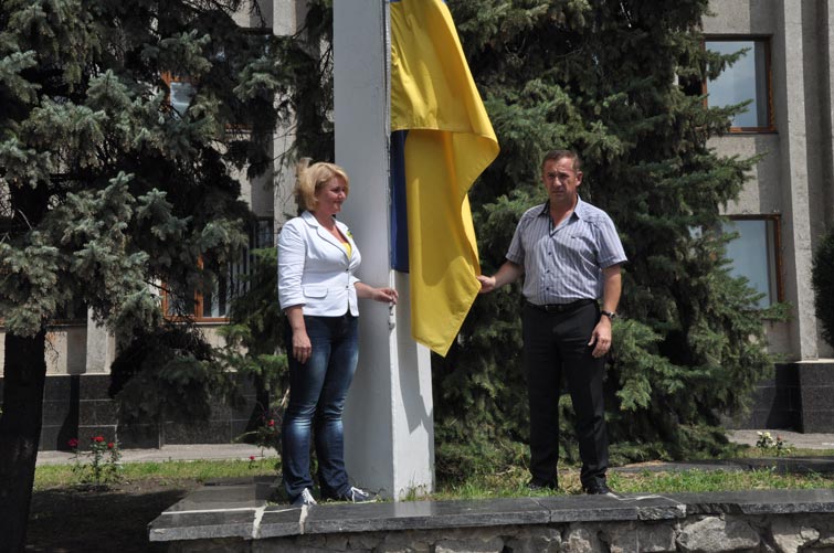 Біля адмінбудинку Слов'янської міської ради під звуки Державного Гімну України був урочисто піднятий Державний Прапор України. Право підняти Державний Прапор України було надано активістці Автомайдану-Харків Катерині Яресько та депутату Слов'янської міської ради Вадиму Сухоносу, який протягом 10 днів перебував у полоні бойовиків в захопленій будівлі міського СБУ.