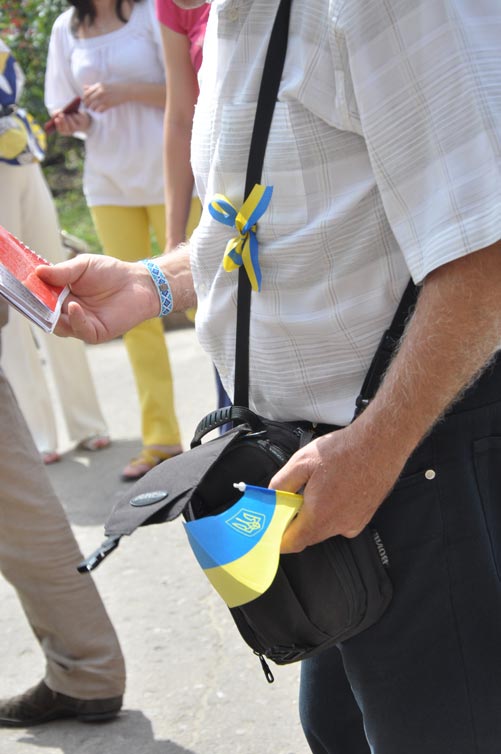 Активістами Харківского автомайдану місту була передана так необхідна державна символіка України – великі державні Прапори України, прапори для автомобілів, настільні прапорці, синьо-жовті стрічки.