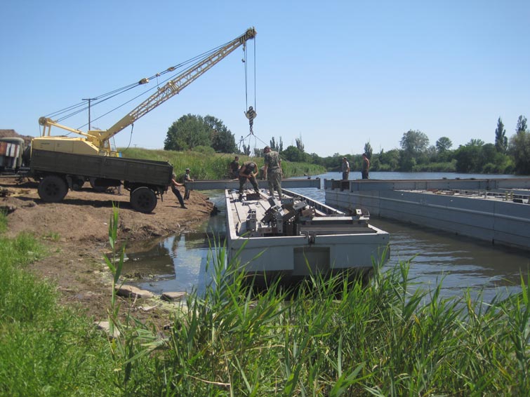 194 понтонно-мостовий загін Державної спеціальної служби транспорту Міністерства інфраструктури отримав завдання навести два автомобільних мости через водні перешкоди, замість зруйнованих бойовиками стаціонарних переправ. Для оперативного пересування техніки та людей будуть влаштовані тимчасові переправи.