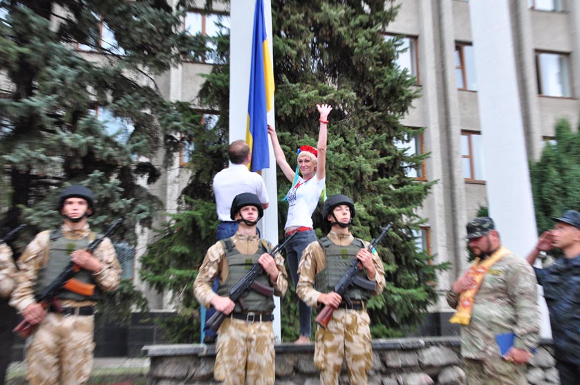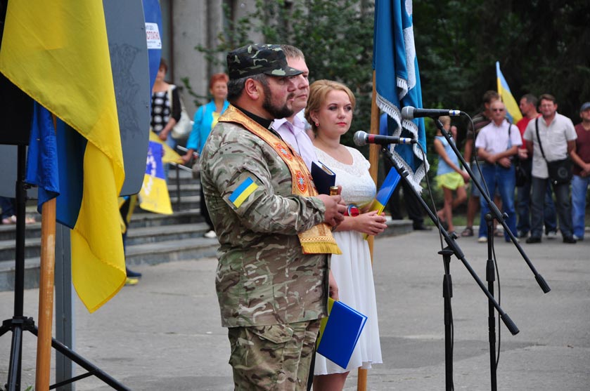 «Цього року ми з вами стали свідками і драматичних подій. Коли на нашій, українській землі, майоріли інші прапори, а наша національна символіка була під забороною. Ми побачили як громадяни, які мали хоробрість і намагалися не дозволити наруги над українською символікою піддавались тортурам, вмирали за це.