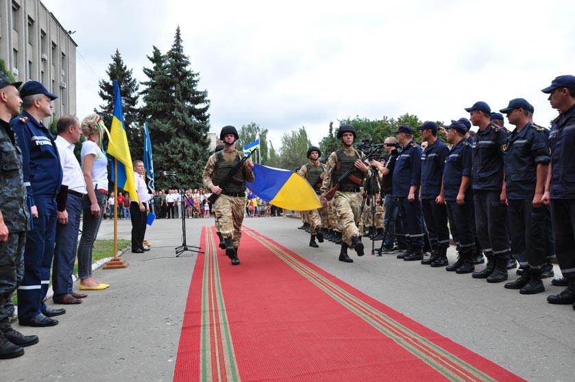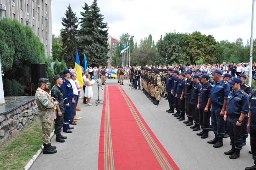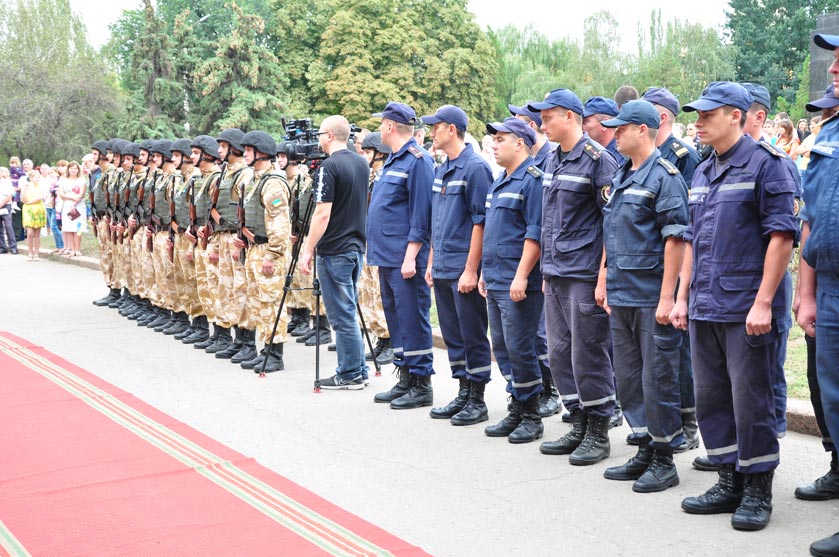 Від Національної Гвардії - заступник командувача об’єднаного угрупування Національної Гвардії України, полковник Максим Петренко. Також зі словами привітання до слов’янців звернувся заступник начальника зведеного загону ДСНС України, полковник цивільного захисту Євген Василевський.