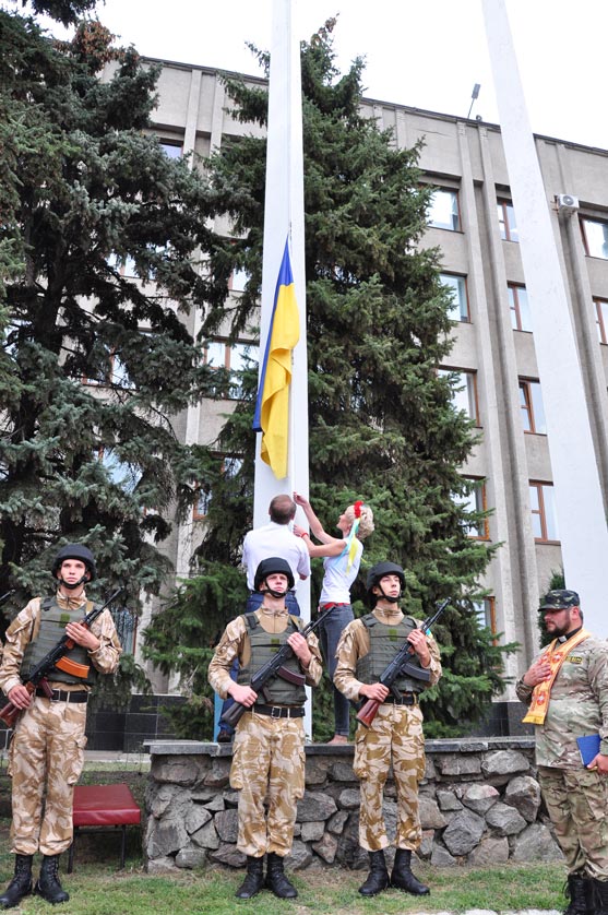 23 серпня для участі в урочистій церемонії підняття Державного Прапора біля адміністративної будівлі зібралися мешканці і гості міста, працівники органів місцевого самоврядування, представники збройних сил України, Національної гвардії, ДСНС.