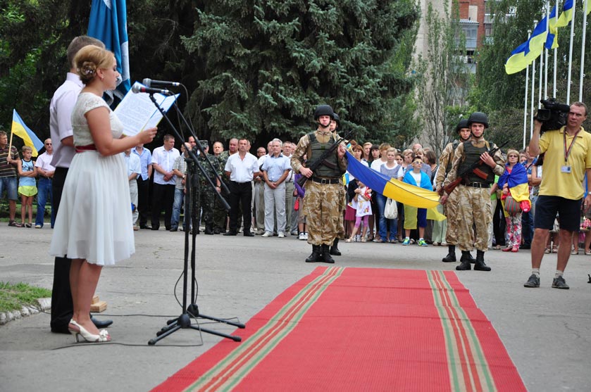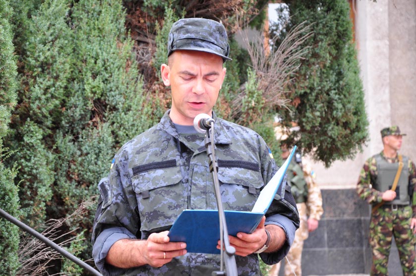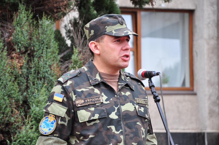 Присутніх на церемонії і всіх мешканців Слов’янська від імені збройних сил України привітав начальник проекту цивільно-військового співробітництва Збройних Сил України, полковник Олексій Ноздрачов.