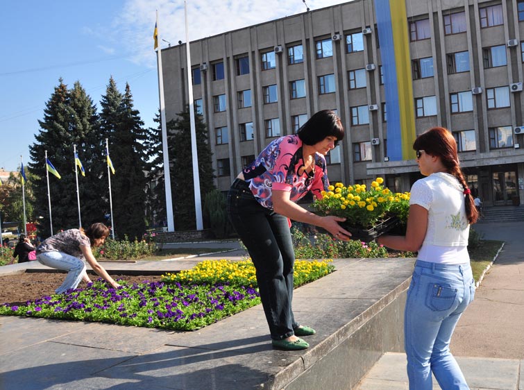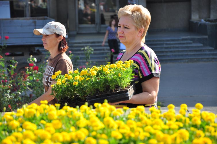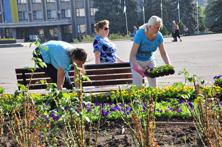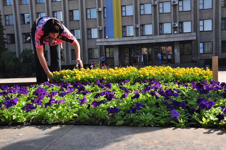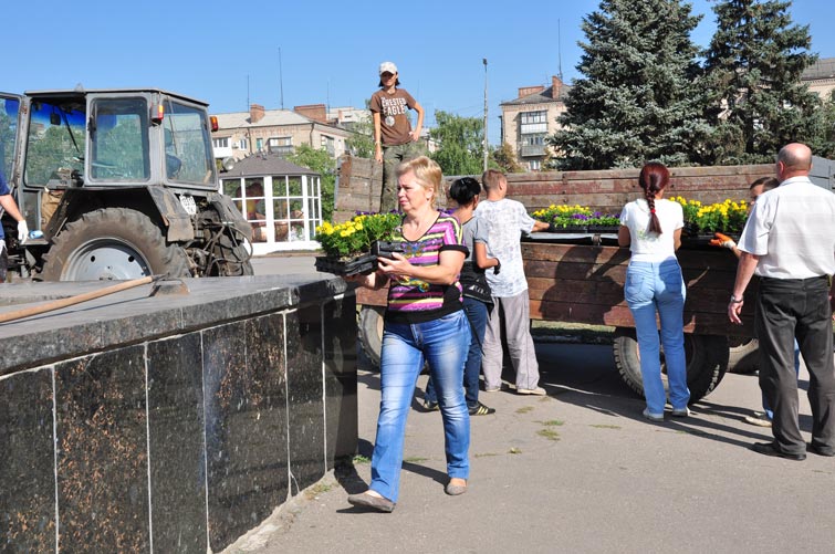 На центральній площі Слов’янська за один день з’явилося 10 тисяч квітів[28 серпня 2014 10:40]