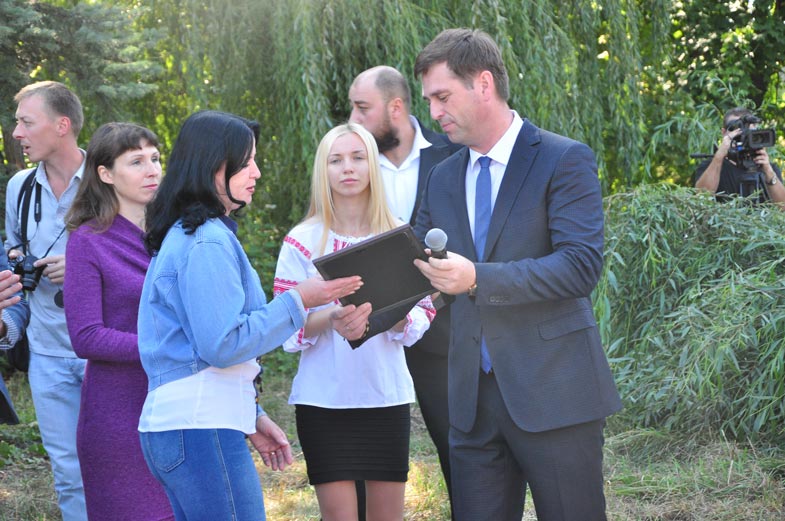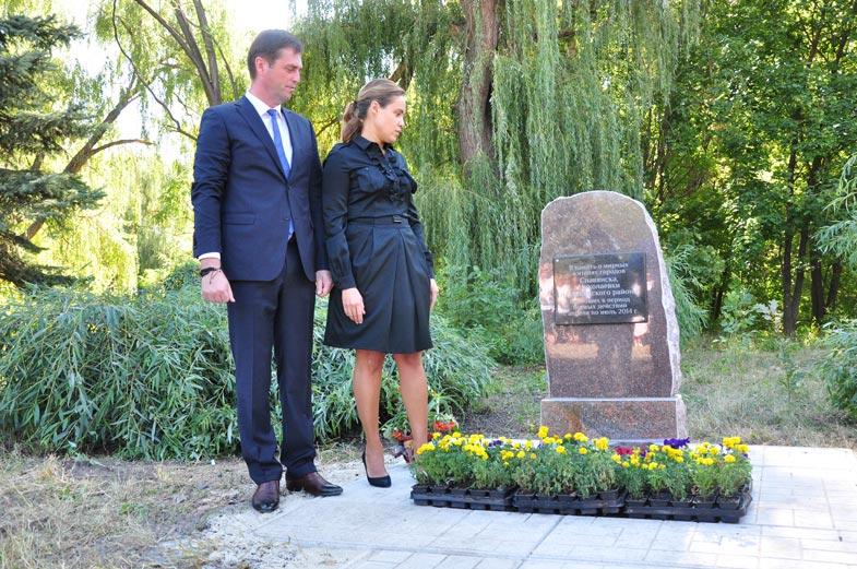 По закінченні мітингу-реквієму пройшла церемонія відкриття пам'ятного знака в пам'ять про мирних жителів Слов'янська, Миколаївки та Слов'янського району, загиблих з квітня по липень 2014 року. Як зазначили представники благодійного фонду «Дорога життя», які стали ініціаторами встановлення споруди, цей пам'ятний знак - основа майбутнього монумента всім жертвам бойових дій на сході України. Павло Придворов нагородив Почесними грамотами Слов’янської міської ради людей, який зробили значний внесок у відновлення і відбудову міста.