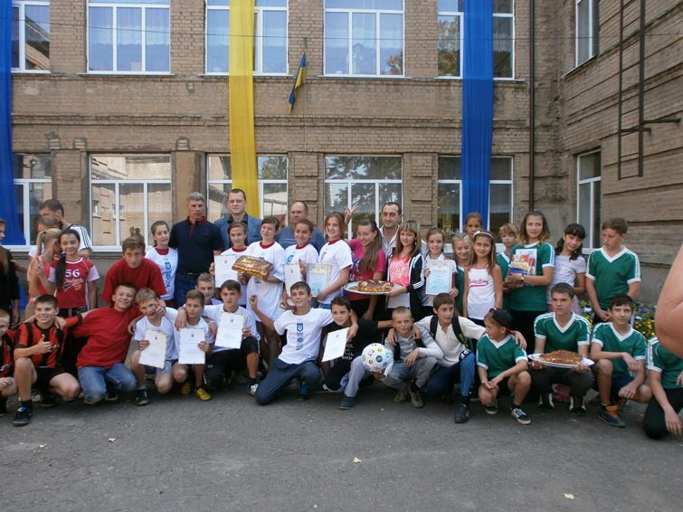 Начальник відділу у справах сім’ї, молоді, фізичної культури та спорту Міщенко Олександр Миколайович вручив учасникам та призерам грамоти та презенти, а команда-переможець ЗОШ № 18 отримала комплект футболок з олімпійською символікою від Національного олімпійського комітету Донецької області!