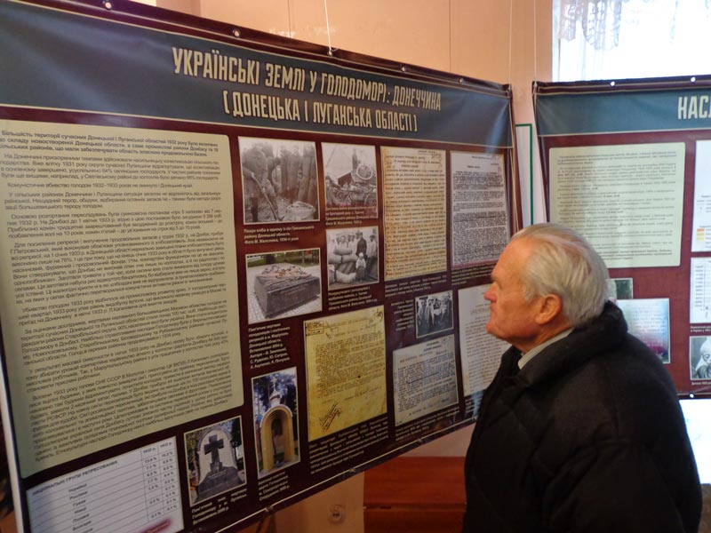 Співробітник Служби безпеки України, керівник слідчо-оперативної групи з розслідування кримінальної справи «Про вчинення Голодомору – геноциду українського народу 1932 – 1933 рр.», автор одного з розділів виставки полковник Валерій Удовиченко розповів, що основною метою заходу є відкриття жителям Донбасу доказів, що в Голодоморі 1932-1933 рр було скоєно геноцид українців.