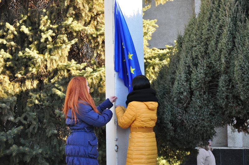 21 листопада з нагоди Дня Гідності та Свободи біля адміністративної будівлі Слов’янської міської ради відбулось урочисте підняття Державного Прапора України та Прапора Європейського Союзу.
