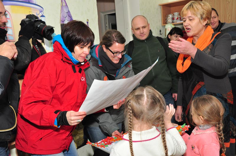 Вікна були встановлені в максимально короткі терміни, тому що спеціалізований дитячий садок «Рушничок» відвідують діти з особливими потребами. Дітки подякували благодійникам та подарували свої малюнки. Представники «Карітас», в свою чергу, передали дітлахам іграшки, олівці і фарби.