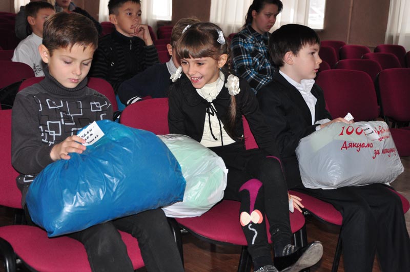 В ЗОШ №5 навчаються 69 дітей зі Сходу України, які були змушені покинути свої рідні домівки. Цього разу 29 дітей молодшого шкільного віку отримали від фонду великі пакети з верхнім теплим одягом.
