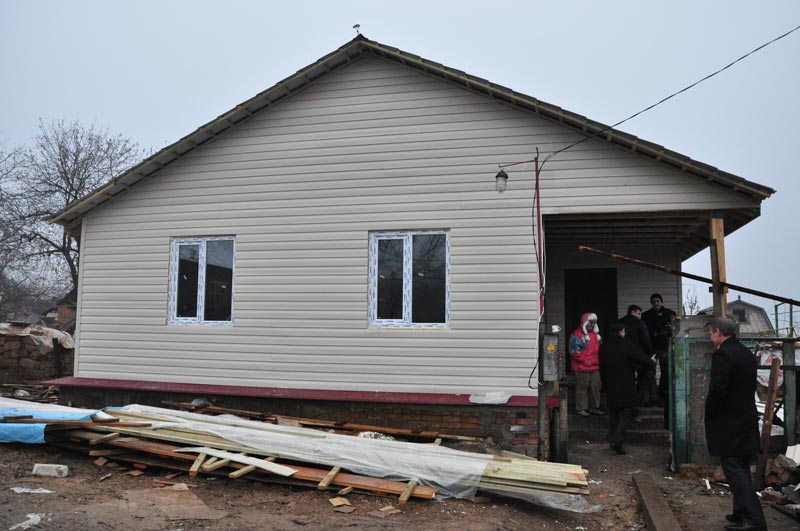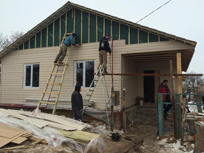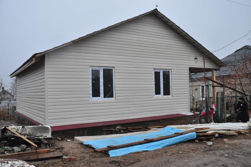 Житло було відновлено з фундаменту, будинок побудований за принципом сандвіча. На сьогоднішній день волонтери з Рівненській області закінчили обшивати будинок, вже вставлені вхідні двері, всередині все обшито основою і гіпсобетоном, опалення у фінальній стадії. Будинок ще не закінчений, але все наближатися до завершення.