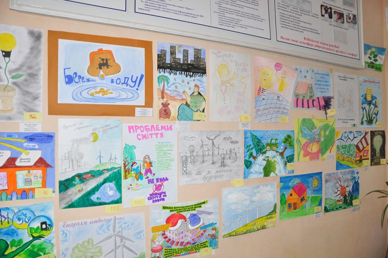 Під час відкриття виставки відвідувачі взяли участь у тематичній експрес вікторині та отримали заохочувальні призи. Бажаючі ознайомитися з дитячим поглядом на проблеми енергозбереження і бачення нашого майбутнього зеленого і здорового, ласкаво просимо в центральну бібліотеку!