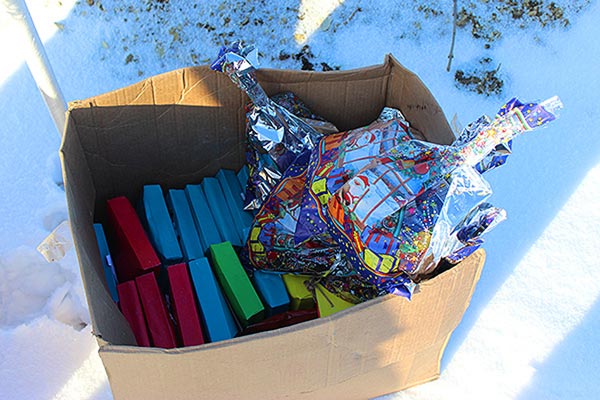 Господарі Нового року приїхали не з порожніми руками, Дід Мороз та Снігуронька привезли новорічні подарунки: солодощі та традиційні мандарини – символ Нового року.