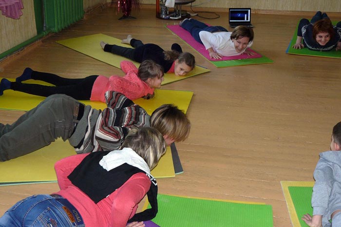 Дві години пролетіли непомітно. Діти разом з дорослими грали, співали, займалися йогою, робили дихальні вправи. Усі отримали заряд бадьорості, гарного настрою та ентузіазму!