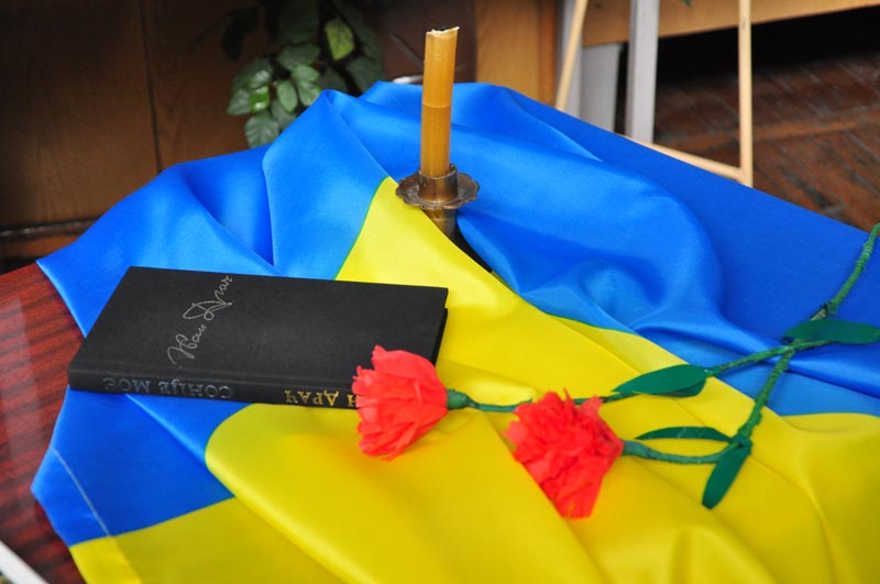 Зокрема під час заходу Слов’янський журналіст, член Національної спілки журналістів України Олександр Романько прочитав свого вірша «Небесній сотні» та продемонстрував прапор України з привітаннями та побажаннями українських військових, які зараз стоять на захисті нашої Батьківщини в селищі Піски.