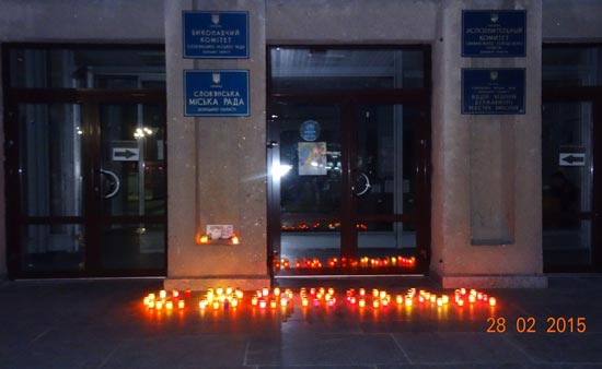 28 лютого в Слов’янську шоковані зухвалим розстрілом у центрі Москви біля Кремля відомого противника режиму Володимира Путіна, російського державного діяча Бориса Немцова, мешканці Слов’янська та представники молодіжних громадських організацій міста прийшли під стіни Слов’янської міської ради з запаленими лампадками та портретами Бориса Немцова, аби вшанувати пам’ять убитого.