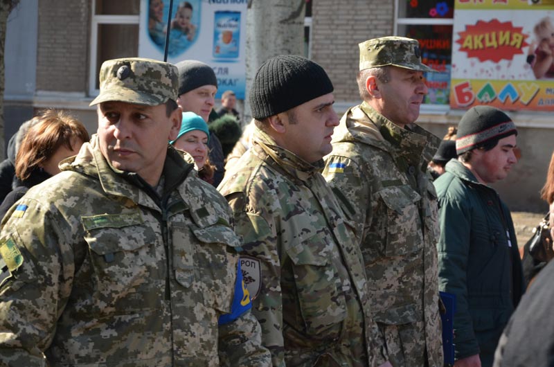 На мітингу виступили в.о. міського голови, секретар міської ради Олег Зонтов, голова товариства «Просвіта» імені Тараса Шевченка Володимир Савенко, голова громадської організації «Гуртом Слов'янськ» Михайло Нечипоренко, офіцер військової комендатури м. Слов`янська, майор Андрій Рудий, волонтер з м. Дружківка Павло Островський, вчителі та учні навчальних закладів Слов’янська та інші.