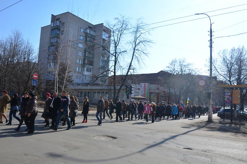 Після завершення мітингу присутні поклали квіти до пам’ятника Кобзареві та урочистою ходою повернулися на центральну площу Слов’янська.