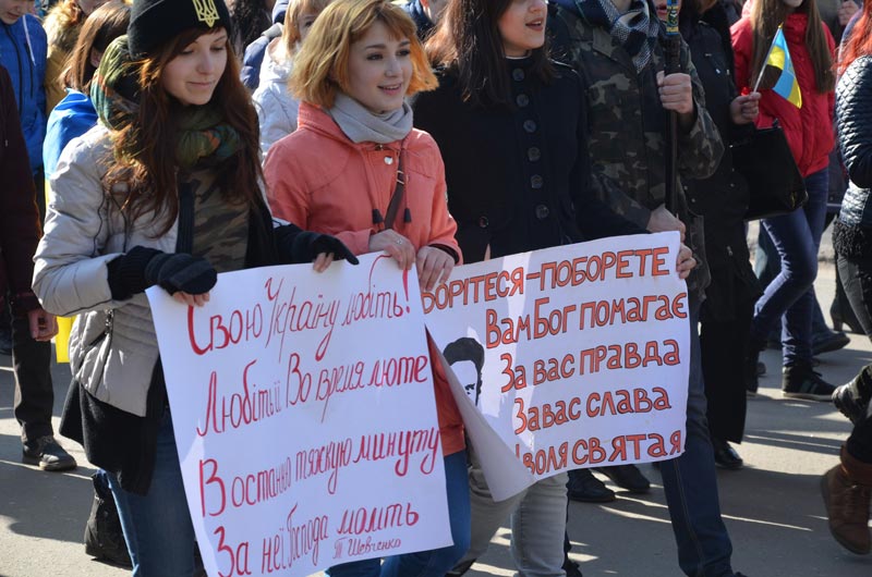 Весь час проходження урочистої колони звучали патріотичні девізи, рядки з творів Тараса Григоровича Шевченка.