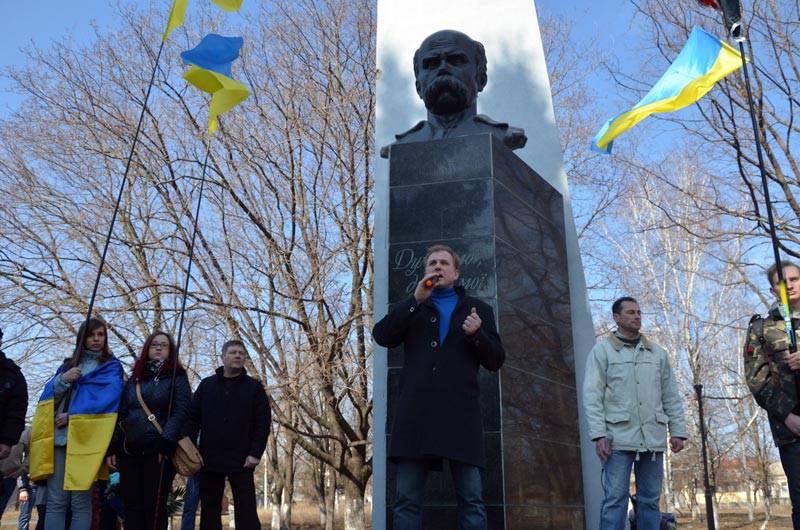 Під час мітингу, виконуючий обов’язки міського голови, секретар Слов'янської міської ради Олег Зонтов, зокрема сказав: «На жаль сьогодні чергову річницю Тараса Шевченка ми святкуємо в дуже складний час, тим не менш, для кожного українця слово Кобзаря - це зброя, яка надихає на боротьбу і дає сили знесиленим».