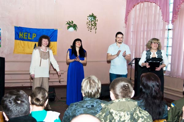 "Музичний батальйончик" або "Концертна сотня" волонтерської групи "Help Army" приїхала з концертом до бійців Національної гвардії в Слов'янськ. Батальйончик невеликий – співачка Вікторія Рафальська, фіналіст конкурсу "Україна має талант" Олександр Кварта, поет і композитор Борис Севостьянов і ведуча концерту доцент Харківського педуніверситету, у минулому – капітан команди КВН "Перша столиця" Анжела Денисенко. А ще адміністратор Олександр Гончаров і звукорежисер Станіслав В'юнник.