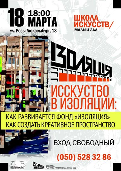 Представники фонду «Ізоляція» розкажуть на своєму прикладі, як створювати проекти і відкривати їх громадськості, а так само поділяться своїми ідеями та планами, реалізованими на Сході України.