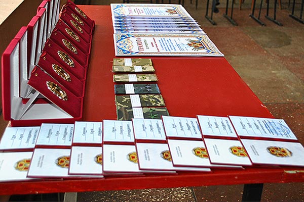В імпровізованому концертному залі зібрався весь вільний від служби особовий склад, багатьом з присутніх були вручені нагороди, військові звання та почесні грамоти.