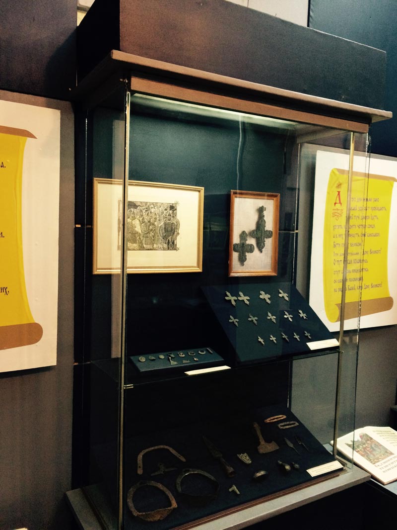 На виставці представлено археологічні матеріали, знайдені на території Слов’янського району: предмети знаряддя і споряддя довньоруських воїнів, предмети християнського культу та побуту Київської Руси. Доповнюють виставку художні роботи, фотографії і література за темою.