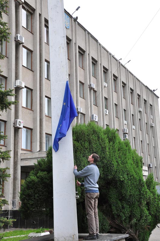 У п’ятницю, 15 травня, напередодні Дня Європи в Україні, що цьогоріч випав на 16 травня, біля адміністративної будівлі Слов’янської міської ради відбулася церемонія урочистого підняття прапору Європейського Союзу, Державного Прапору України, а також низка інших заходів, зокрема вільний велопробіг «Крути педалі до Європи», конкурс малюнків на асфальті, спортивні змагання присвячені Дню Європи в Україні.