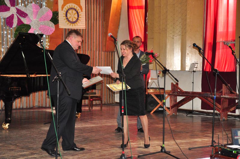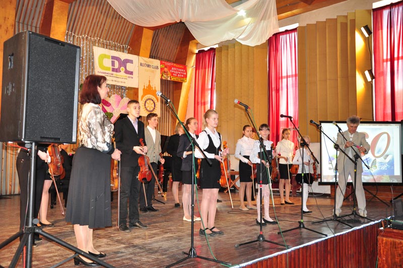 Особливо приємно відзначити, що виступи запрошених гостей супроводжувалося не тільки словами визнання та подяки, а також дуже потрібними школі подарунками. Так радник міського голови Артем Степанчеко, а також представники депутатської групи «Єдиний Слов’янськ» передали школі сертифікати на придбання музичного обладнання. Начальник обласного управління культури Аліна Певна нагородила колектив школи грамотою Донецької облдержадміністрації, представники «Ротарі Клуб» подарували сертифікат на створення мультимедійного класу, а друзі з Естонії передали сертифікат на покупку комп'ютера.