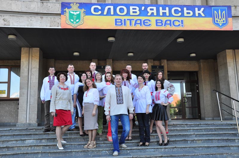 21 травня працівники Слов’янської міської ради та представники депутатського корпусу на чолі з виконуючим обов’язки міського голови, секретарем міської ради Олегом Зонтовим долучилися до свята української національної вишиванки, прийшовши на роботу в цей день у сорочках, прикрашених вишитим орнаментом у національному стилі.