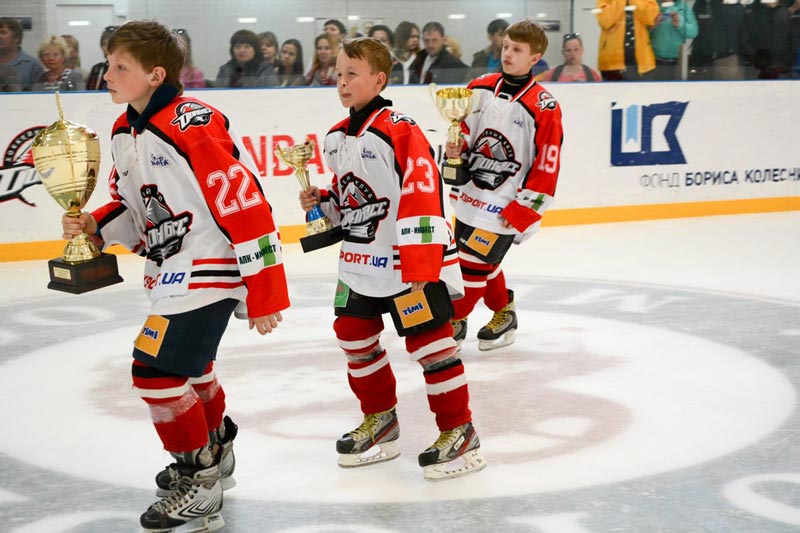 Официальные лица церемонии наградили тренерский состав и юных хоккеистов дипломами, сувенирами и сладкими подарками от компании "КОНТИ", после чего две самые старшие хоккейные команды донецкой школы закрыли фестиваль своим очным матчем: