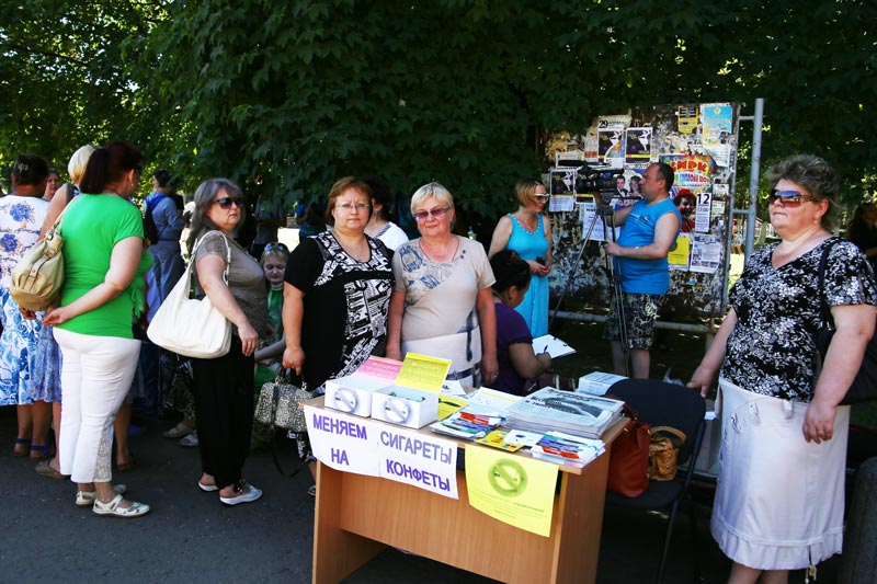 Під час акції було проведено консультації спеціалістів Слов’янського міського центру здоров'я та лікувально-профілактичних закладів міста з питань профілактики захворювань, що виникають в разі вживання тютюнових виробів, алкогольних напоїв та наркотичних речовин. Всі бажаючі могли пройти діагностику своїх фізіологічних показників. Фахівці Червоного хреста вимірювали артеріальний тиск та рівень цукру в крові. Реабілітолог громадської організації «Неонелла» навчала жінок методиці само обстеження молочної залози, з метою раннього виявлення раку. Громадською організацією «Наша допомога» була надана мобільна лабораторія для діагностики ВІЛ статусу, під час акції пройшли обстеження 30 чоловік. Фахівець студії «Здоров'я. Краса» надавала інформацію з питань раціонального харчування. Вимірювання співвідношення м’язів до жирової тканини провели фахівці жіночого фітнес клубу «FitСurves». Фахівці «Клініки, дружної до молоді» та сектору кримінальної міліції у справах дітей проводили обмін цукерок на цигарки, а також роз’яснювальну роботу з профілактики девіантної поведінки серед молоді.