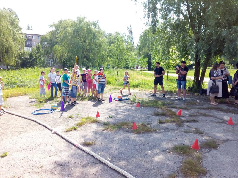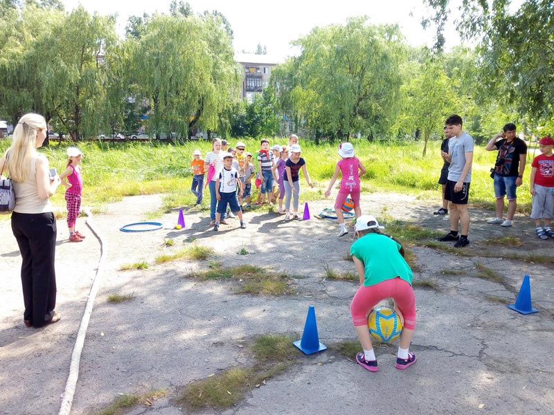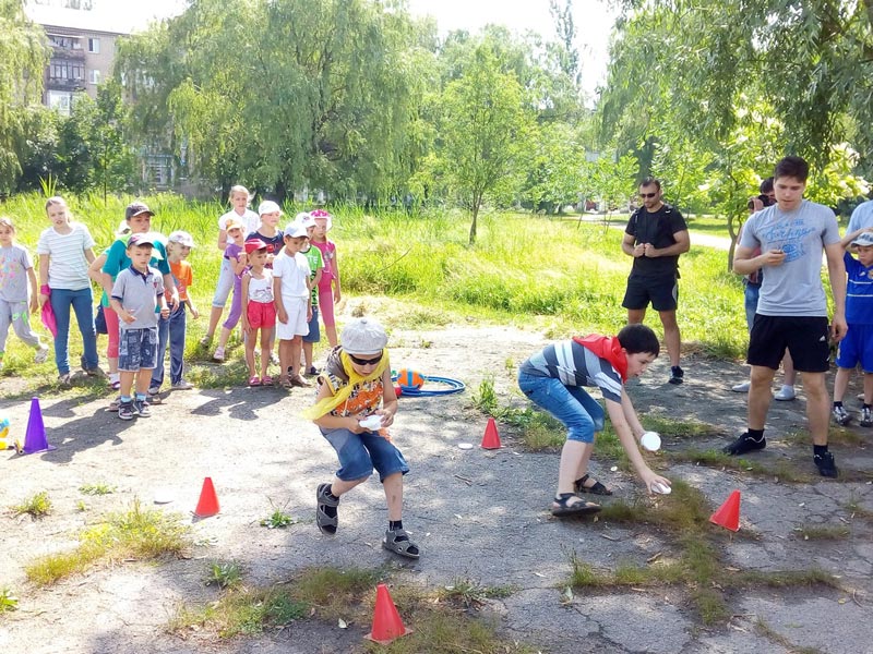 Програма заходу розпочалась з дружньої та бадьорої зарядки всіх присутніх і масовий пробіг в 500 метрів. Після цього діти поділились на групи які брали участь у різноманітних спортивних конкурсах і змаганнях: перетягування канату, присідання, жонглювання м’ячем, змагання з бігу та дартсу, сгибання та розгинання рук в упорі лежачи (віджимання від підлоги). На свято зібралося близько 150 дітей з пришкільних таборів, лінгвоцентру, юні вихованці спортивного клубу рукопашного бою «Беркут», центру танцювальних мистецтв «Грація», дитячо-юнацьких спортивних шкіл.