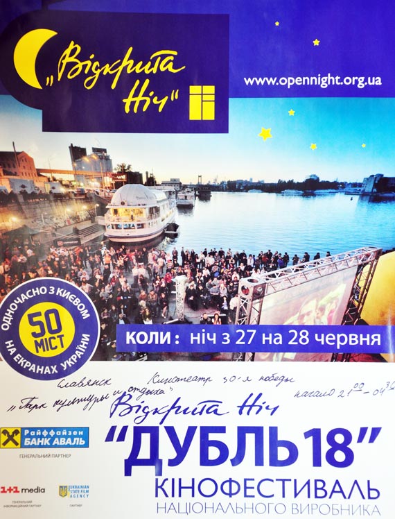 В ніч з 27 на 28 червня в міському парку культури та відпочинку відбудеться нічний перегляд фільмів під відкритим небом в рамках фестивалю «Відкрита ніч – Дубль 18», який цього року відбудеться у 18 раз одночасно на 50 майданчиках в Україні,Європі та Канаді.