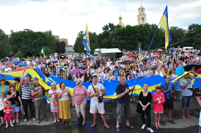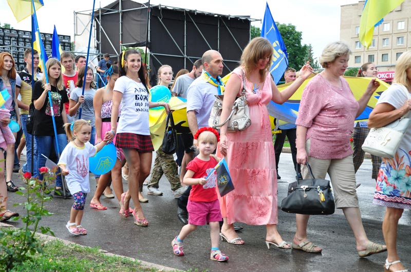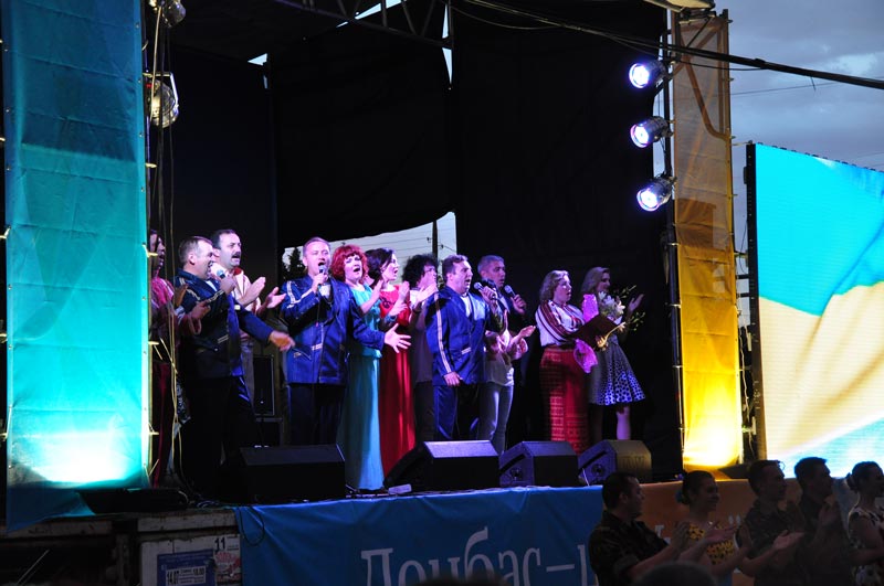Увечері для жителів та гостей Слов’янська, завдяки Благодійному Фонду «З країни в Україну», була організована святкова програма. Всі, хто прийшов цього дня на центральну площу, мали змогу подивитися документальний фільм «Відторгнення. Битва За Україну», пройти урочистою ходою центральними вулицями міста з величезними прапорами України, насолодитися яскравим виступом Ансамблю Національної гвардії України та послухати пісні відомих українських зірок Олексія Мочанова, Бориса Севастьянова, гуртів «Nesprosta», «СКАЙ».