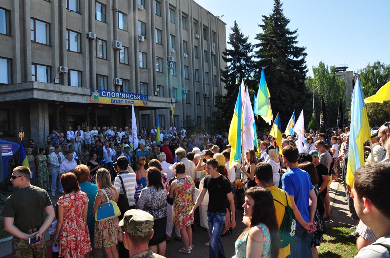 Вранці 5 липня біля будівлі міської ради відбувся урочистий мітинг з нагоди відзначення Першої річниці звільнення Слов`янська від російсько-терористичних сил та відновлення мирного життя.