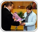 Неля Штепа, поздравляя работников ЖЭКа № 1 с юбилеем, вручила грамоты и подарки
